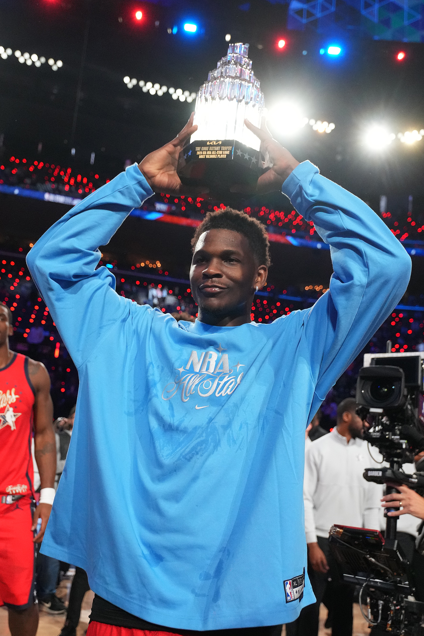 央视网消息:北京时间2月16日,2026全明星正赛决赛,美国星辰队47-21美国条纹队。本场比赛,美国星辰队的爱德华兹5投3中,得到8分4篮板2助攻,荣膺本次全明星MVP。值得一提的是,这是爱德华兹生涯首次当选AMVP,他三场比赛合计得到了32分。他成为了森林狼队史第二位斩获这一荣誉的球员,森林狼队史首位AMVP是2003年的加内特。