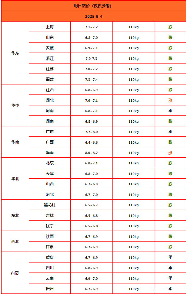 据机构数据显示,受供需调整,预计,9月4日,外三元瘦肉型标猪价格出栏均价在14.03元/公斤,后市关注集团猪企出栏节奏的变化以及屠企开工率的变化!