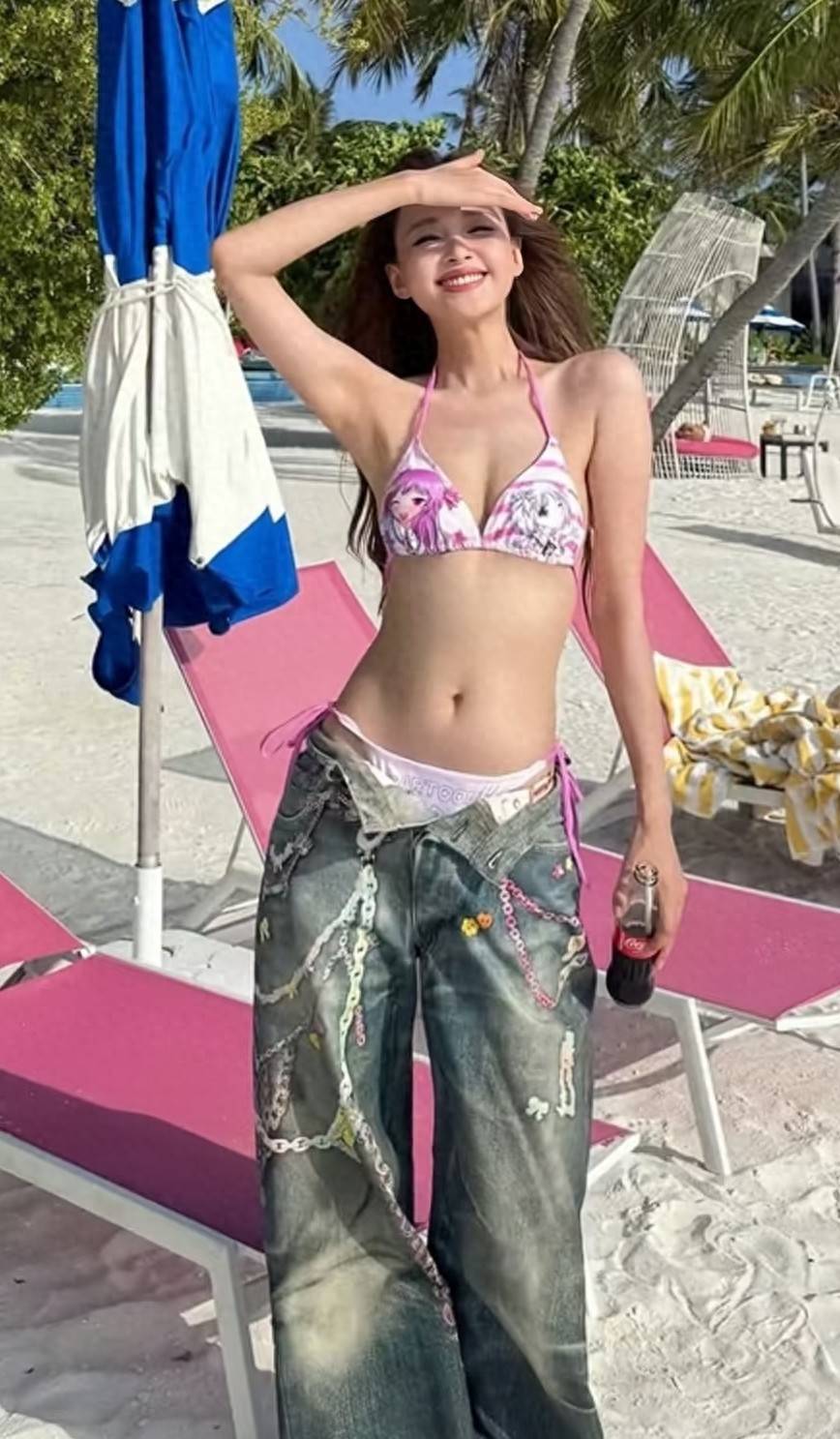 前几天,孙怡晒出海边游玩的近照,更是大大方方的晒出自己的曼妙好身材,简单直接的浅粉色裹胸深V吊带,把丰腴的上半身展现出来,而曼妙的人鱼线更是看起来多了一丝健康的美感,
