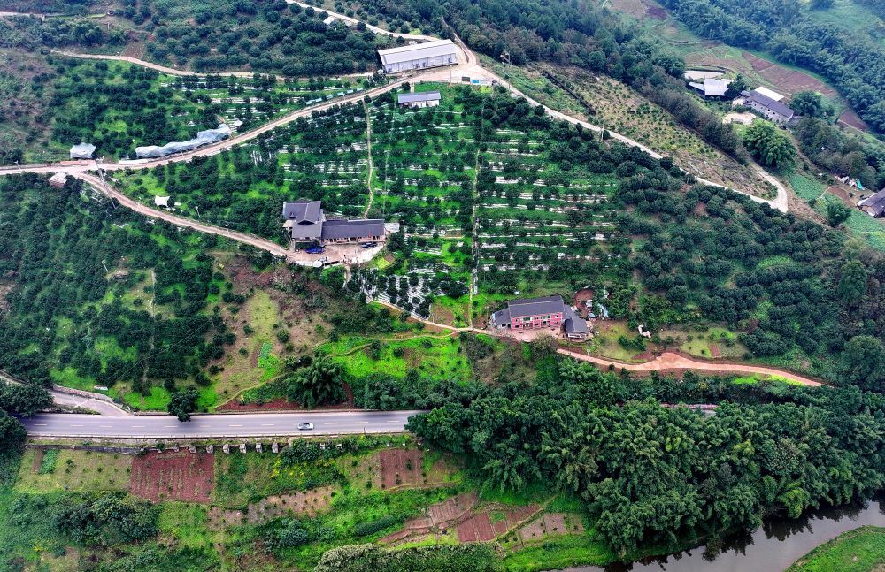 基地负责人贺君丽站在坡地上,随着指尖轻点手机屏幕,纵横交错的管道应声“苏醒”:细密的水雾袅袅溢出,裹挟着淡淡花香漫过整片果园。风过雾散,不过四五分钟,管护便已完成。